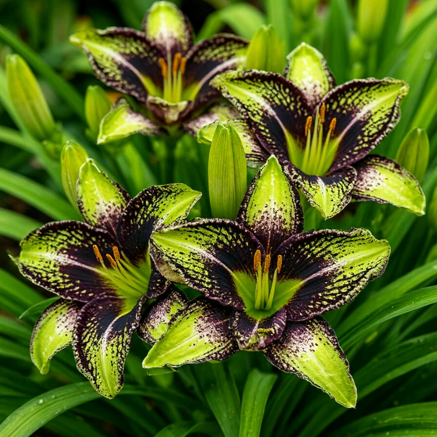 Защита от вредителей и болезней: Лилейники относительно устойчивы к вредителям и болезням, но иногда могут поражаться слизнями, тлей или ржавчиной. При необходимости применяют соответствующие меры защиты.